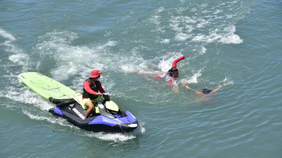 En relación al simulacro, María Agustina Ardito, jefa del sector Oeste, explicó que se realizaron varias pruebas en las que intervinieron guardavidas con la ayuda de distintos elementos como zunchos, tablas SUP y las motos de agua, recientemente incorporadas.