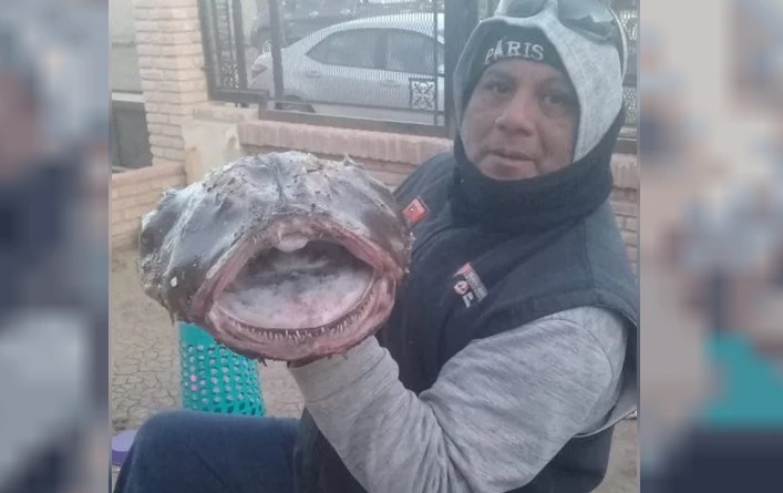 Hallaron un extraño pez en la costa argentina, con colmillos y «antena»