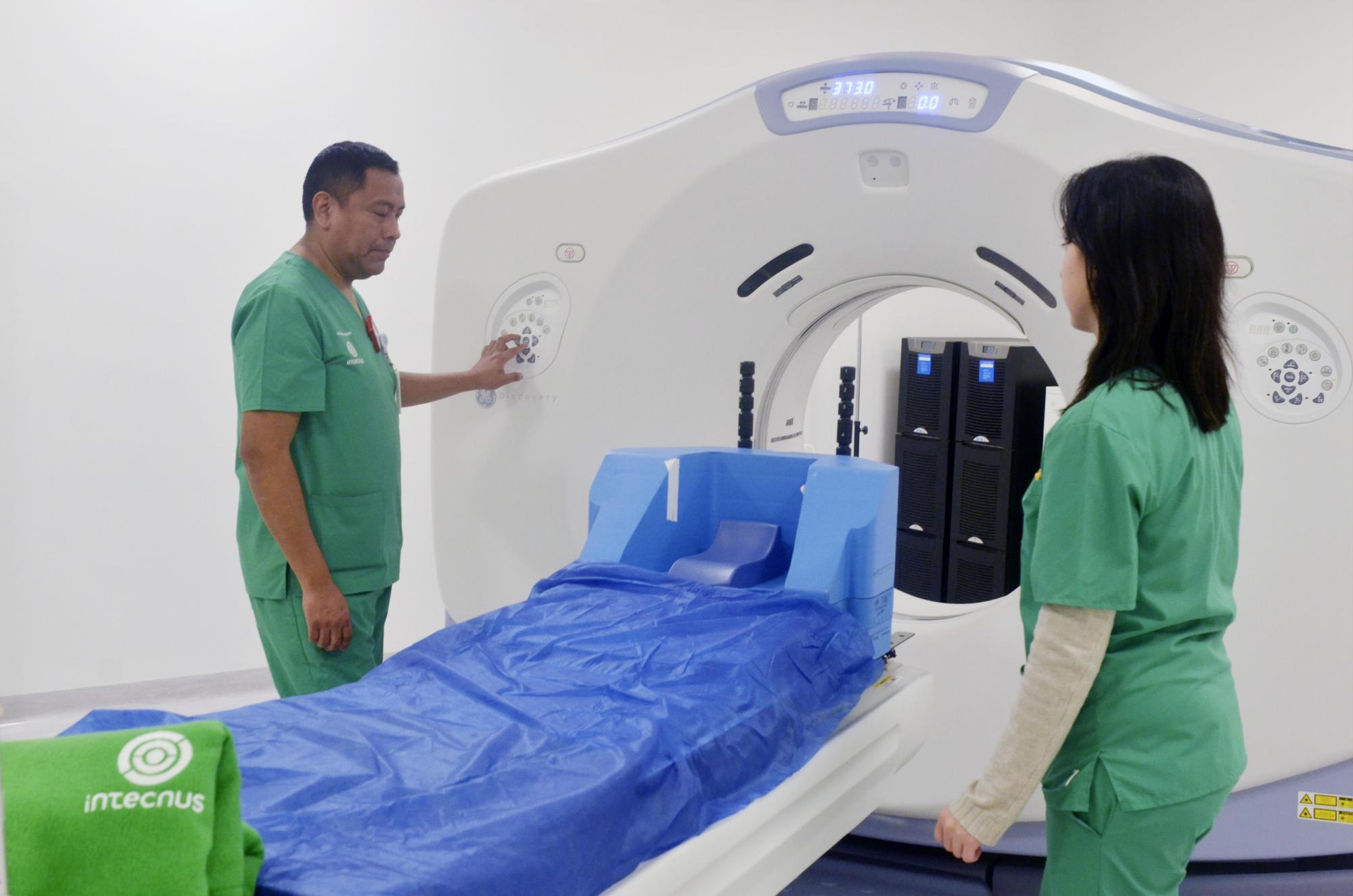 Intecnus es un instituto que creó la Comisión Nacional de Energía Atómica (CNEA) y depende además de la Fundación Centro Diagnóstico Nuclear y la Fundación Escuela de Medicina Nuclear (estas últimas de Mendoza). Fue construido con inversión del Estado Nacional y su atención se realiza por convenios con obras sociales y Salud Pública, entre ellos garantiza la atención de afiliados a Pami e Ipross, que representan un 40% de los pacientes.