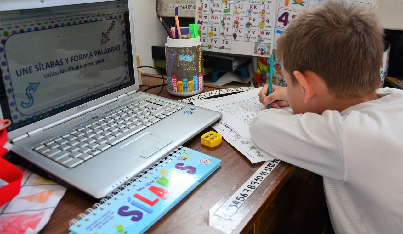 • Solo los niños con PC y banda ancha (más de 20 Mbps.) acceden al contacto en línea con el docente o a las plataformas educativas.
