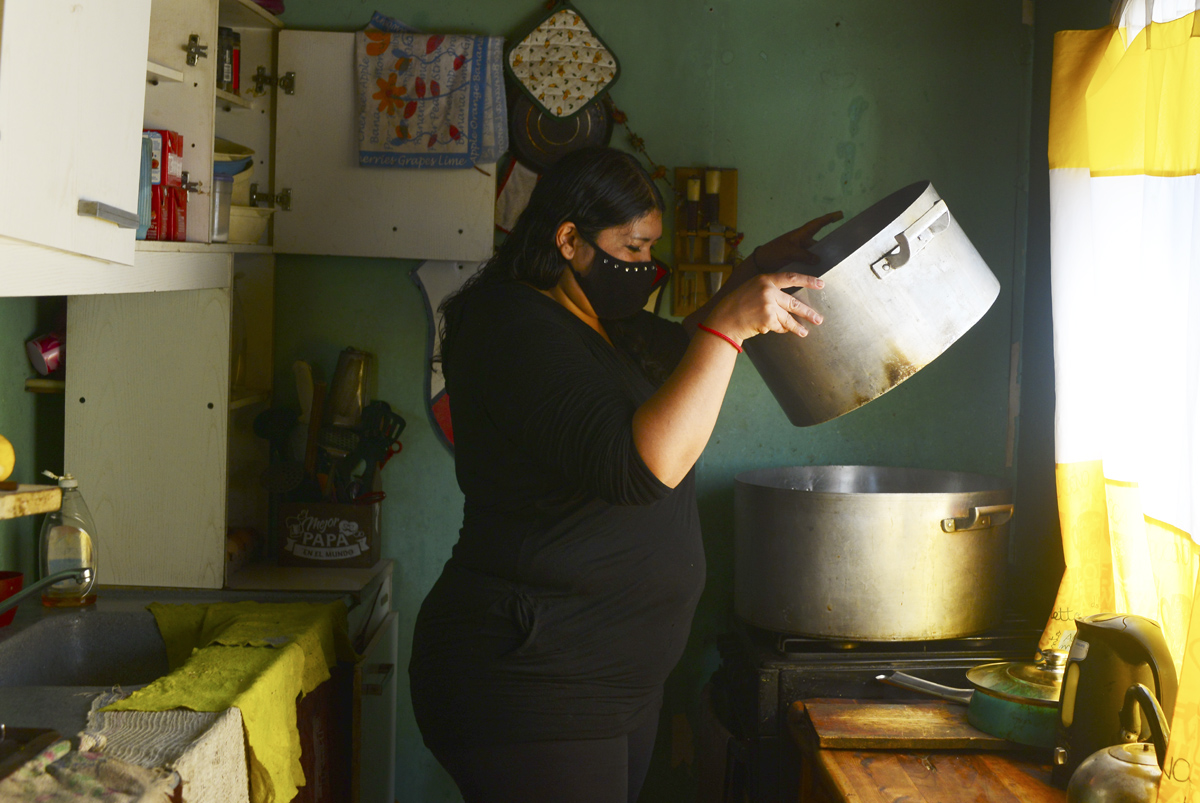 Julieta se toma un descanso. Está cansada. Desde hace dos años y medio cocina en su hogar para las personas de su barrio que necesitan un plato de comida caliente.