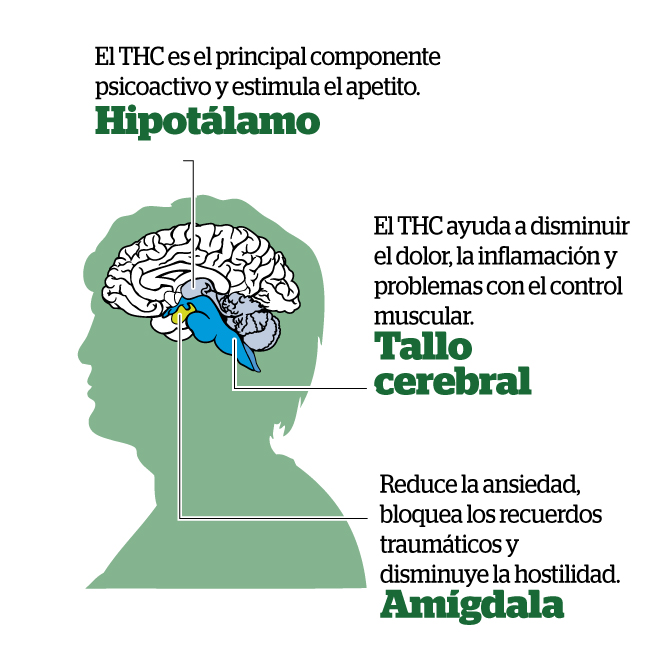 El Cannabidiol (CBD) representa el 40% de los extractos de la marihuana. Reduce el dolor y la inflamación, controla las convulsiones epilépticas y sirve para el tratamiento de enfermedades mentales o adicciones.