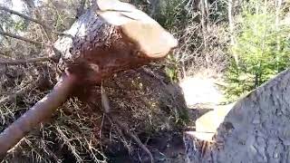 Mientras hace un paneo de un viejo ciprés talado sobre una propiedad dice: «Se tiró a propósito, le dieron la inclinación para que caiga sobre la cabaña. Bueno, gente de Parques Nacionales, acá tienen las pruebas que me pidieron en la última reunión».