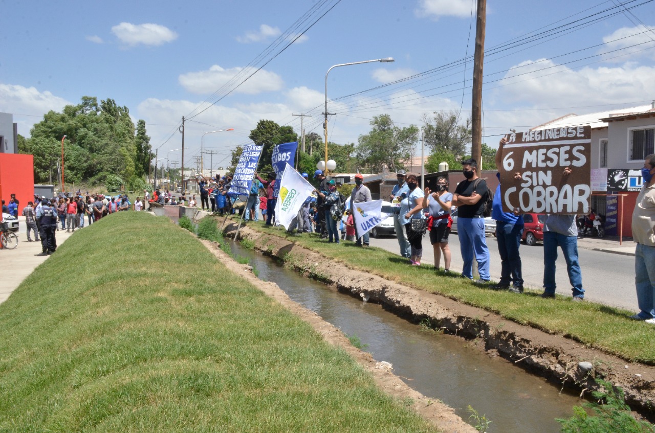 Un segundo grupo estuvo conformado por trabajadores de la Cooperativa La Reginense, que reclamaron el pago de sueldos de los últimos seis meses; en tanto que también un grupo de trabajadores rurales autoconvocados manifestó frente al edificio de la Ciudad Judicial para reclamar por la implementación del adicional de zona desfavorable. Ninguno de los tres grupos interrumpió el acto y mantuvieron su protesta desde la calle.