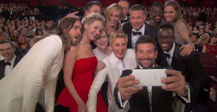 El selfi de los Oscar 2014, con Ellen DeGeneres, Jennifer Lawrence y Brad Pitt, todos sonrientes, fue tomado con un teléfono inteligente Samsung, auspiciante de la velada.