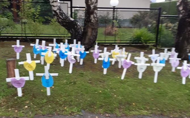 Instalan cruces en la casa de García Larraburu, por su voto a favor del aborto legal