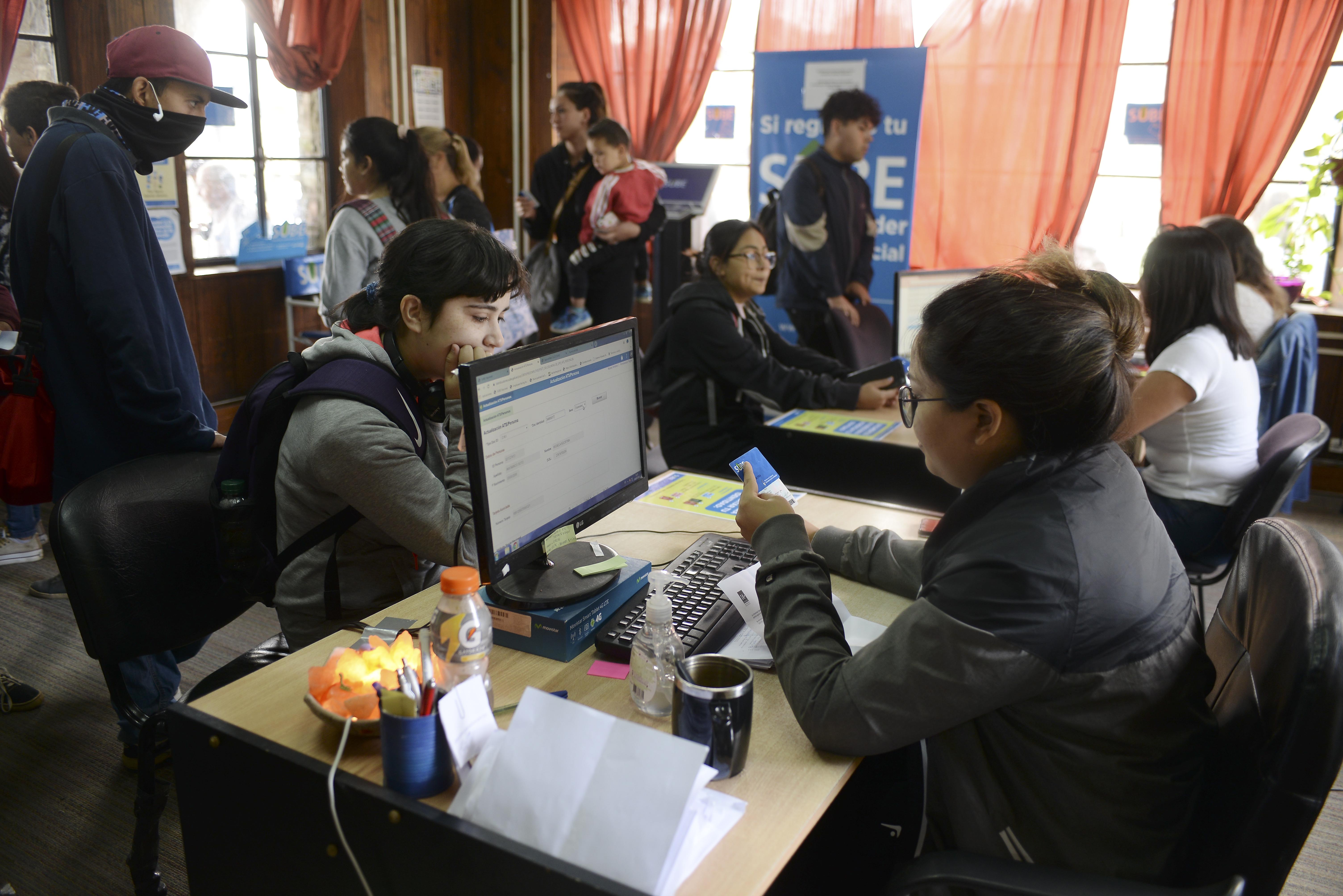 Había jóvenes que hacían la cola con chicos en brazos y también padres que se presentaron con la documentación de sus hijos, para que no pierdan el día de clases. Según informó el municipio, los mayores de edad que estudian deben realizar el trámite “de manera presencial”.