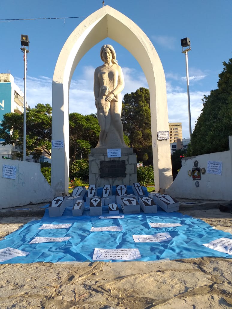 Intervinieron monumento en Neuquén en rechazo al proyecto de aborto