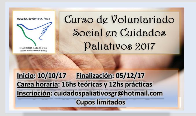 Invitan en Roca a un curso para voluntarios en cuidados paliativos