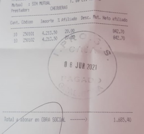 El Ipross anunció públicamente que haría esos reintegros y en paralelo, lo que parecía tan complejo de modificar, tuvo su momento de cambios. Los códigos que identifican cada práctica fueron revisados y ya para el martes 8 de junio los coseguros exigidos eran mucho más bajos que la semana anterior.