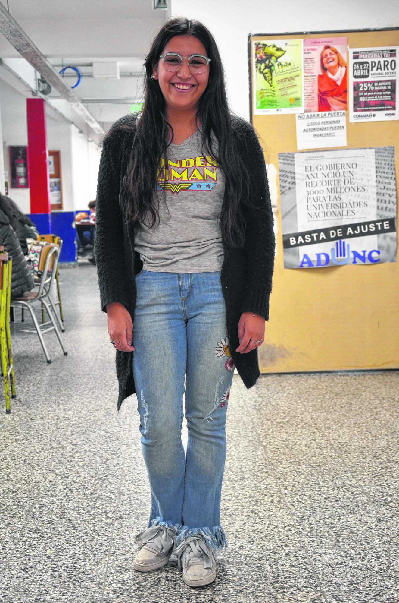 Preside el centro de estudiantes de la Facultad de Humanidades. Fue reelecta. Su carrera es Geografía.