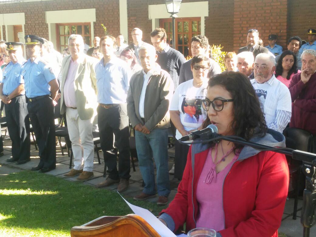 Marcela Aigo, hermana del sub, oficial también fue una de las principales oradoras del acto.
