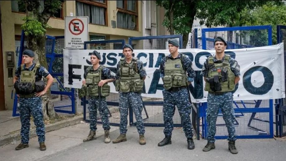 Por otra parte, se instaló un vallado en la puerta de la Unidad Penal 6 de Dolores, ubicada sobre la calle Riobamba 251, donde se encuentran alojados los ocho imputados que fueron trasladados a primera hora al palacio judicial.