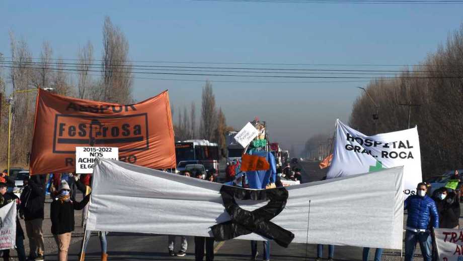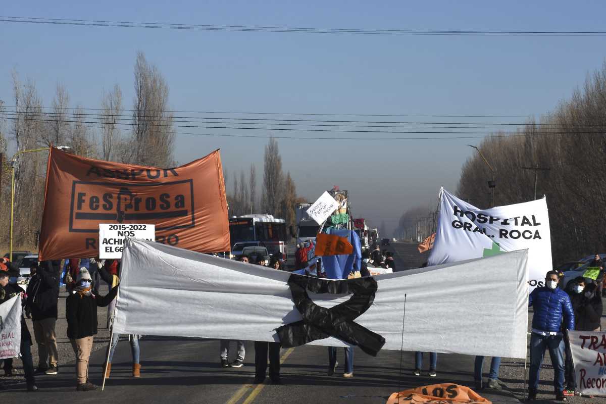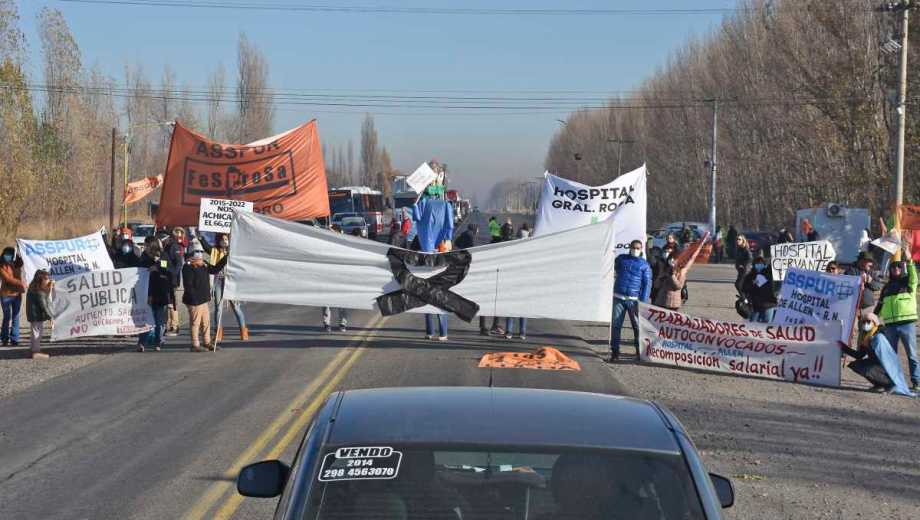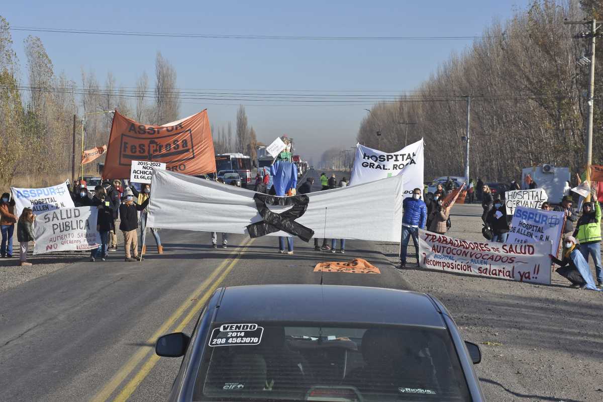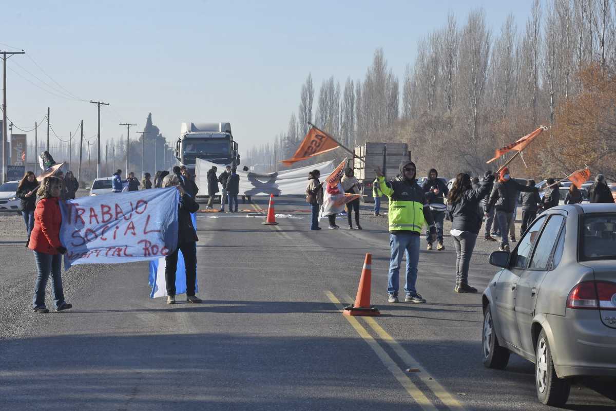 El personal de Salud de distintos hospitales de la región comenzaron con cortes intermitentes en la ruta Nacional 22, a la altura de Cervantes. Con esta medida, según explicaron, intentan visibilizar la falta de respuestas por parte del Gobierno a las demandas salariales que vienen efectuando desde hace varios meses.