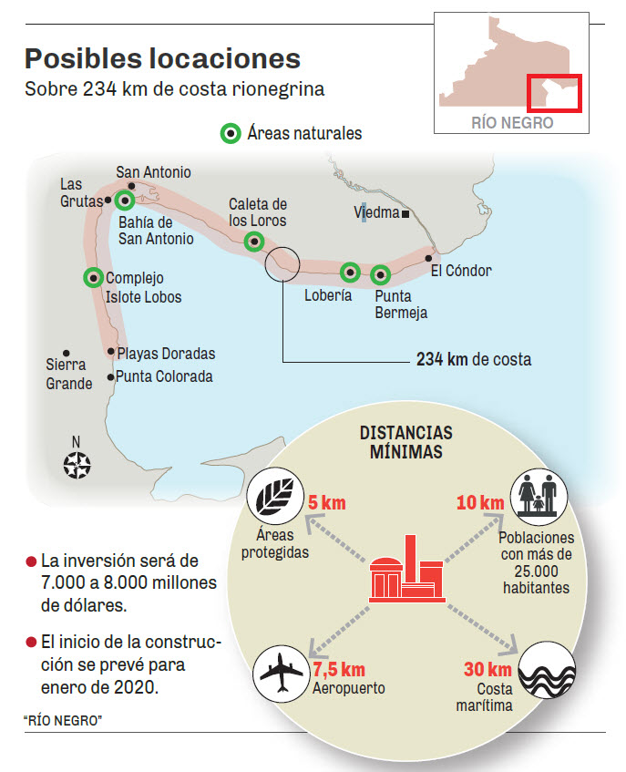 Pese el hermetismo impuesto, Gadano sorprendió al precisar que “será en la costa atlántica” y agregó que el gobierno de Río Negro no se opuso cuando Nación adelantó su proyecto.
