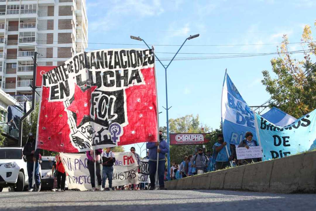 La concentración, que nucleó a integrantes de Barrios de Pie, FOL y Polo Obrero, comenzó cerca de las 9 en plaza San Martín (Avenida Roca y Mitre) y luego se trasladaron a las oficinas de Desarrollo Social (Rhode 350) y la delegación del Ministerio de Trabajo de Nación, ubicada en Avenida Roca y Tucumán.