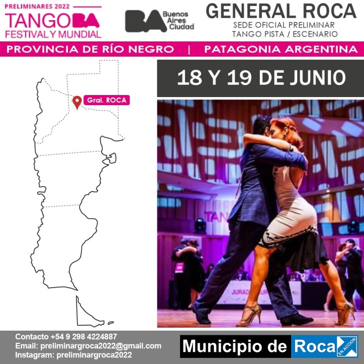 La ciudad será sede de la preliminar del Mundial de Tango 2022 que abarcará todas las provincias patagónicas. El evento será realizará del 18 al 19 de junio en Roca.