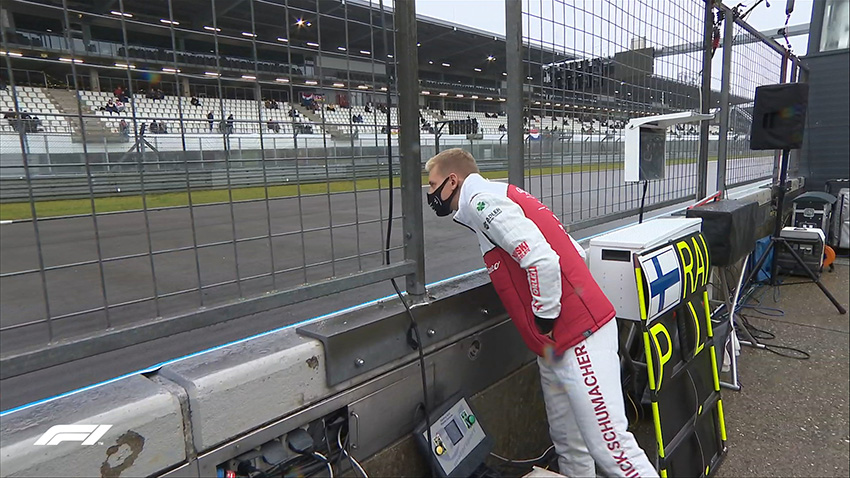 Los pilotos se mantuvieron expectantes en sus boxes y algunos, como Mick Schumacher, quien iba a debutar oficialmente con un Fórmula 1 en el primer entrenamiento, revisaba constantemente el estado del circuito, que, con el paso de los minutos, empeoraba sus condiciones por la niebla.La lluvia y la niebla arruinaron el comienzo a la undécima fecha en Nurburgring.