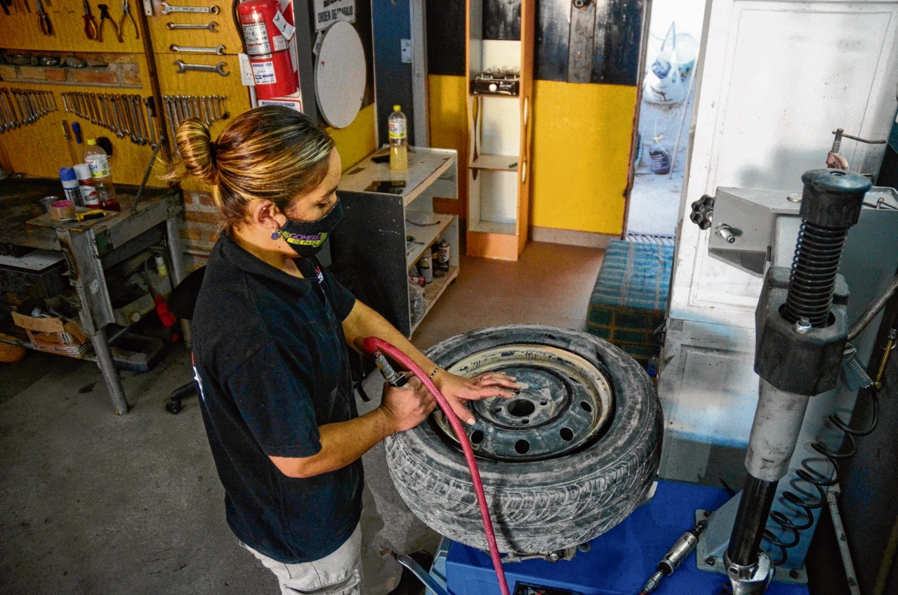 Yamila Gutiérrez tarda solo ocho minutos en sacar la rueda de un auto, parcharla y volverla a colocar. Es la gomera del norte de Roca que sueña ser contadora.
