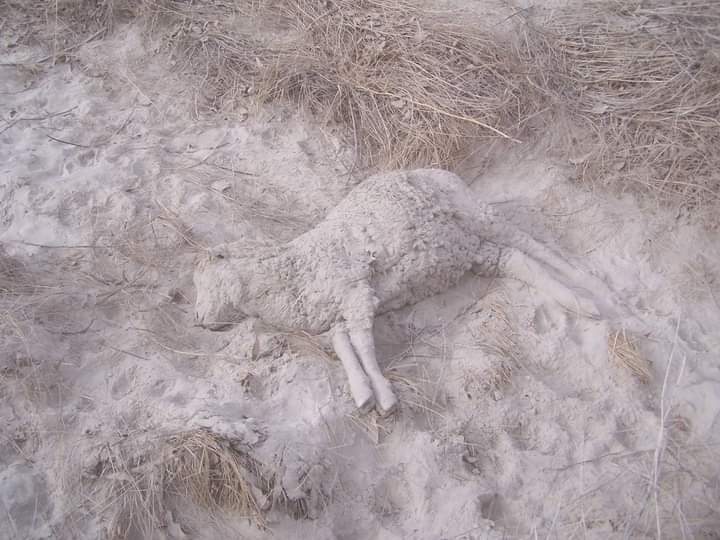 La erupción del Cordón Caulle, causó la muerte de cientos de ovejas en el campo de la familia Trafiñanco y en la Línea Sur de Río Negro. (Foto gentileza)