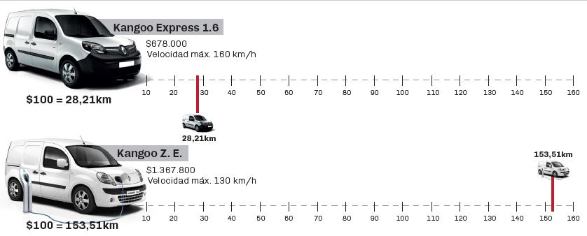 - es la distancia máxima que puede recorrer una Kangoo modelo ZE con una sola carga de batería.