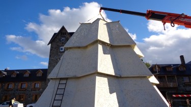 Tiene una altura total de 12m y un ancho de 8,40m con un peso de 8.000 kilos.