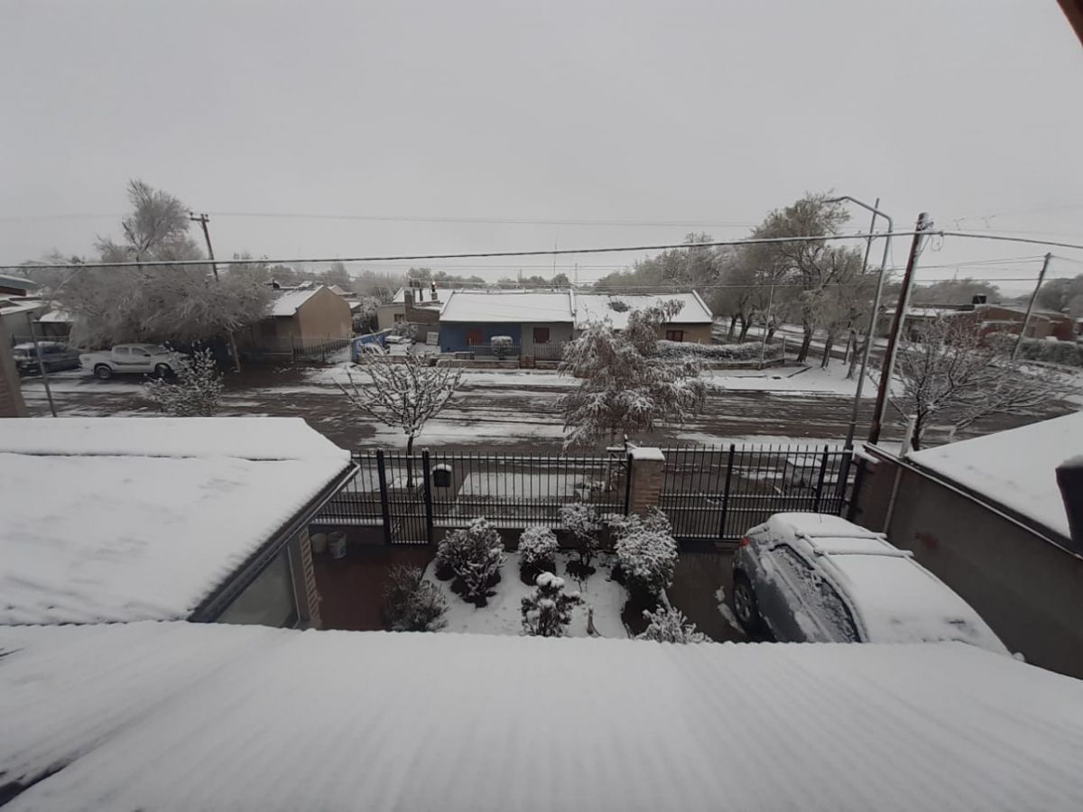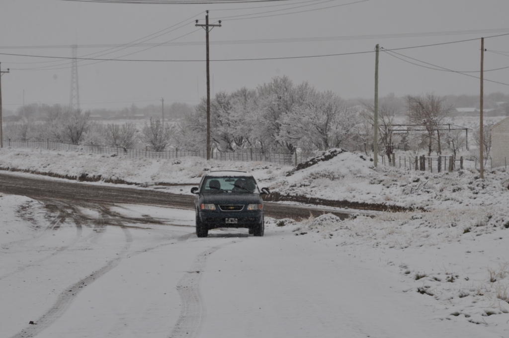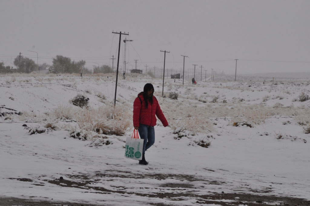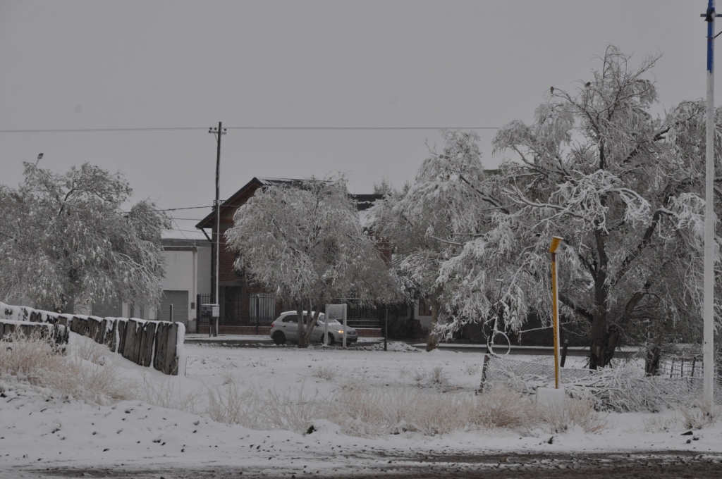 La nieve comenzó a caer durante los primeros minutos de hoy, luego de una llovizna que se registró entre las 19 y la medianoche, y se extendió desde el centro hacia el oeste de la zona, entre Sierra Colorada y la Cordillera y entre La Esperanza y el Paralelo 42.