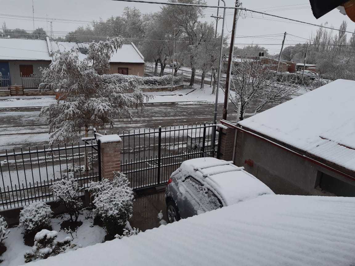 Una sorpresiva nevada cubrió gran parte del suelo de la Región Sur rionegrina durante la madrugada de hoy.