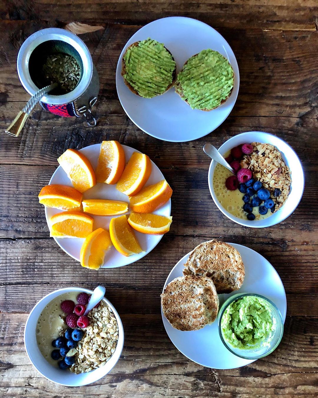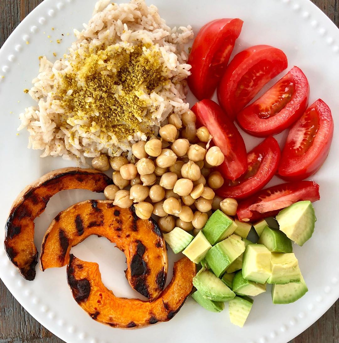 Básicamente hay cinco cosas fundamentales: legumbres, cereales, verduras crudas, cocidas y grasas. Dentro de las legumbres: lentejas, garbanzos, soja, todas. En cuanto a cereales: arroz, quinoa, mijo, fideos, una porción de pan… Verduras crudas la quieras, al igual que las cocidas. En grasas están el aceite de oliva, los frutos secos, la palta… No quiero decir de hacer un plato con todo esto, pero si asegurarnos que haya cada uno de ellos a lo largo del día. Y obvio que cada uno lo va a preparar como más le guste.