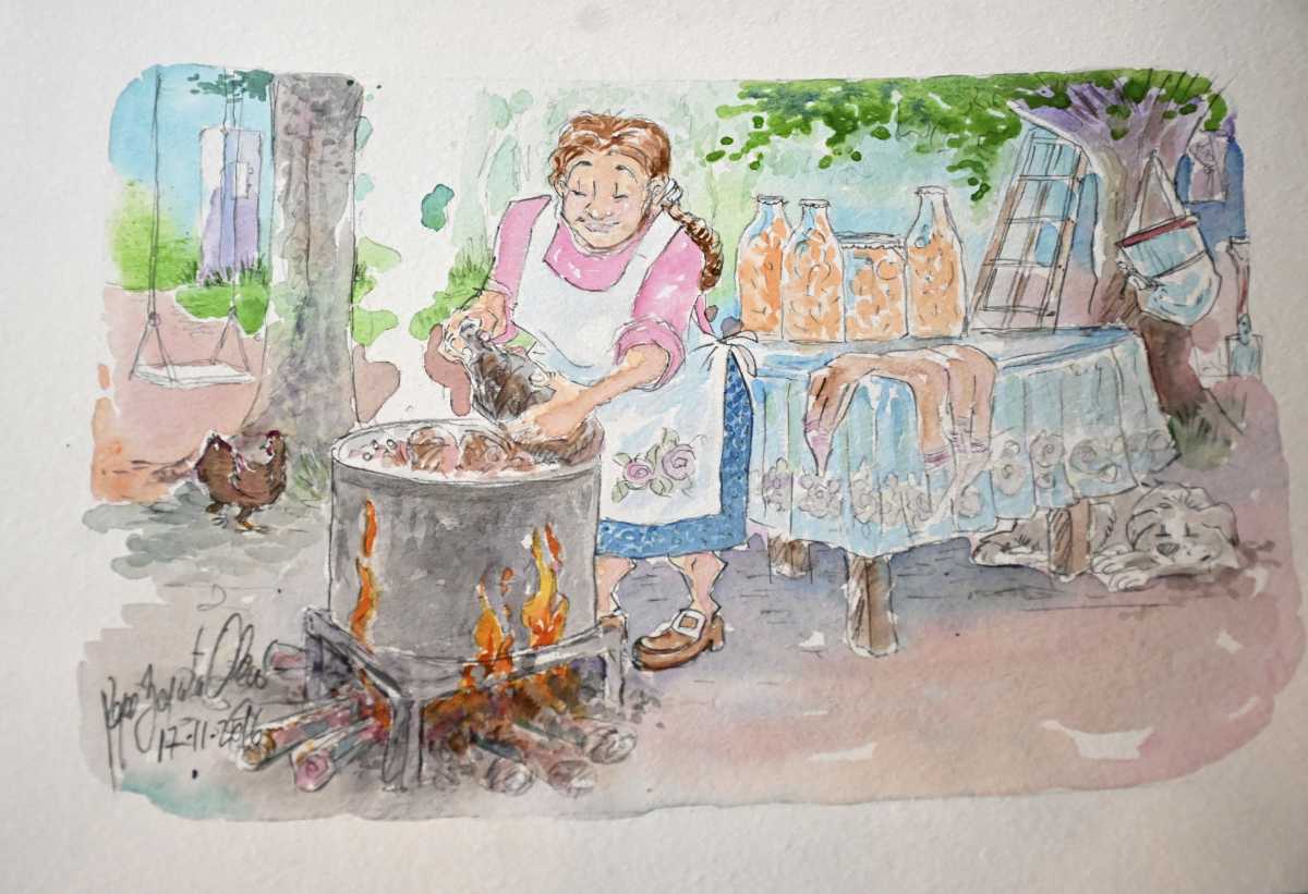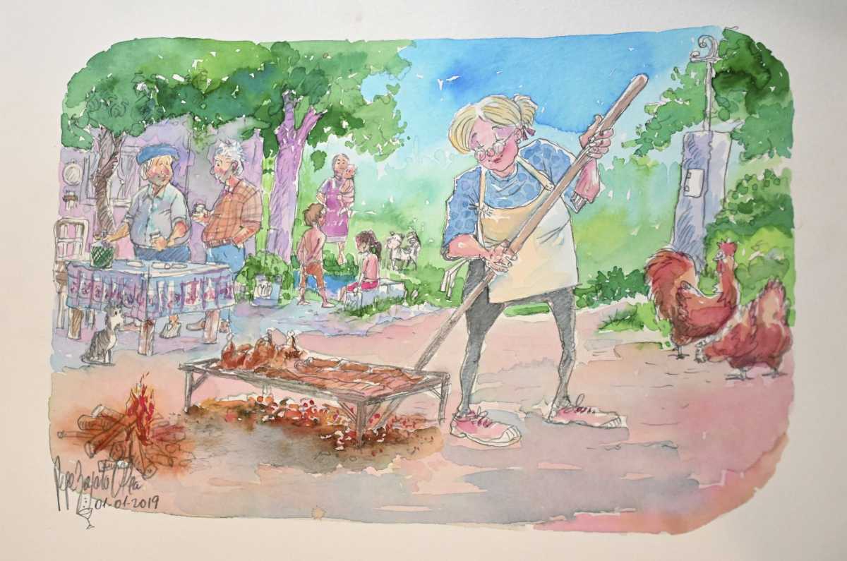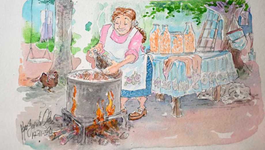De esa manera, cada idea que se propone ilustrar primero se va nutriendo y poblando de lo más variado, hasta que puede pasar por el scanner que la vuelve digital: desde estilos de ropa en una década determinada, tipos de vegetación, labores culturales específicas de una estación del año, animales domésticos, vínculos laborales y familiares… la lista es interminable. “Alguien conocedor de la chacra sabe qué recolectores se usaban”, dice, a modo de ejemplo. No es obsesión ni capricho, sino que hace la diferencia y él lo sabe. De lo contrario, su audiencia se lo recuerda con correcciones. Podría ser molesto, pero él lo toma como un desafío para mejorar.
