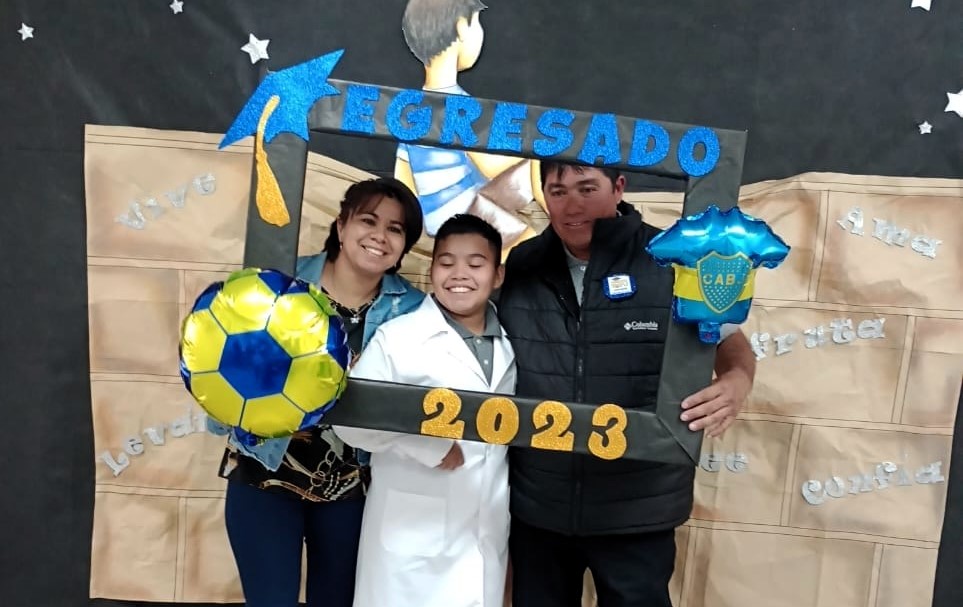 La particular experiencia, impensada en la multitud de la capital neuquina, distante a apenas 93 kilómetros, fue compartida en fotos a través de la cuenta de Facebook de la Escuela. Con una sonrisa que le iluminaba la cara, el estudiante agasajado posó con sus compañeros, amigos, familiares y trabajadores del colegio, detrás del típico marco decorado con su título de egresado y, en este caso, con los colores del club de sus amores, Boca Juniors. Hasta ese gusto se pudo dar.