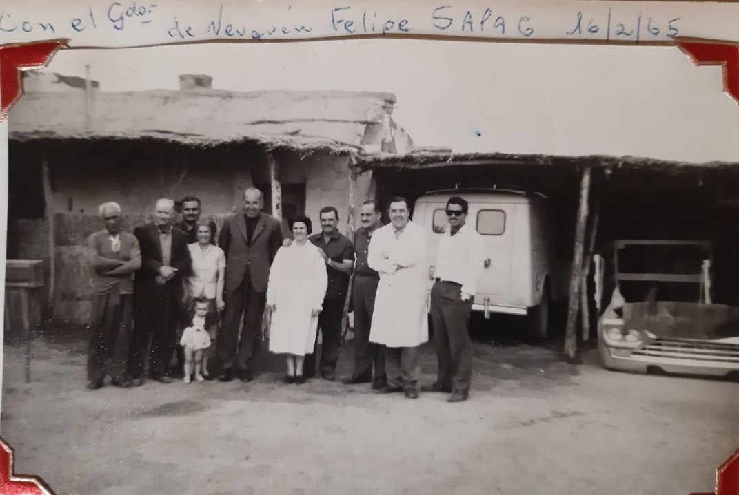 Otro recuerdo con visitas al colegio: el paso del gobernador de Neuquén, Felipe Sapag, en 1965. Foto: Álbum Familia Gilardi, cedido a a la Base de Historia de las Escuelas Primarias de Neuquén.