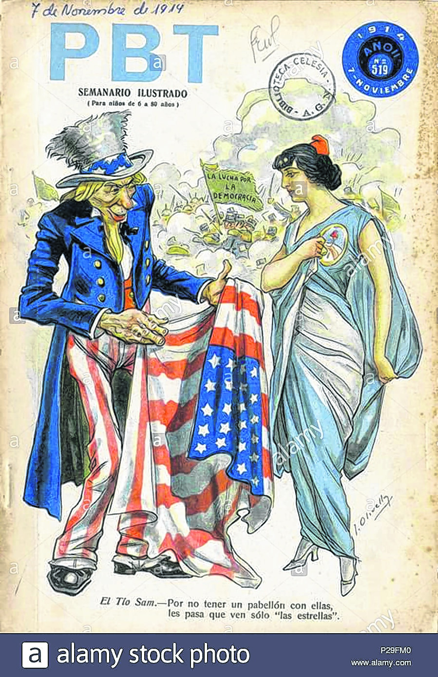 Portada de revista PBT N° 519, con el Tío Sam y la efigie de la Libertad, en 1914.