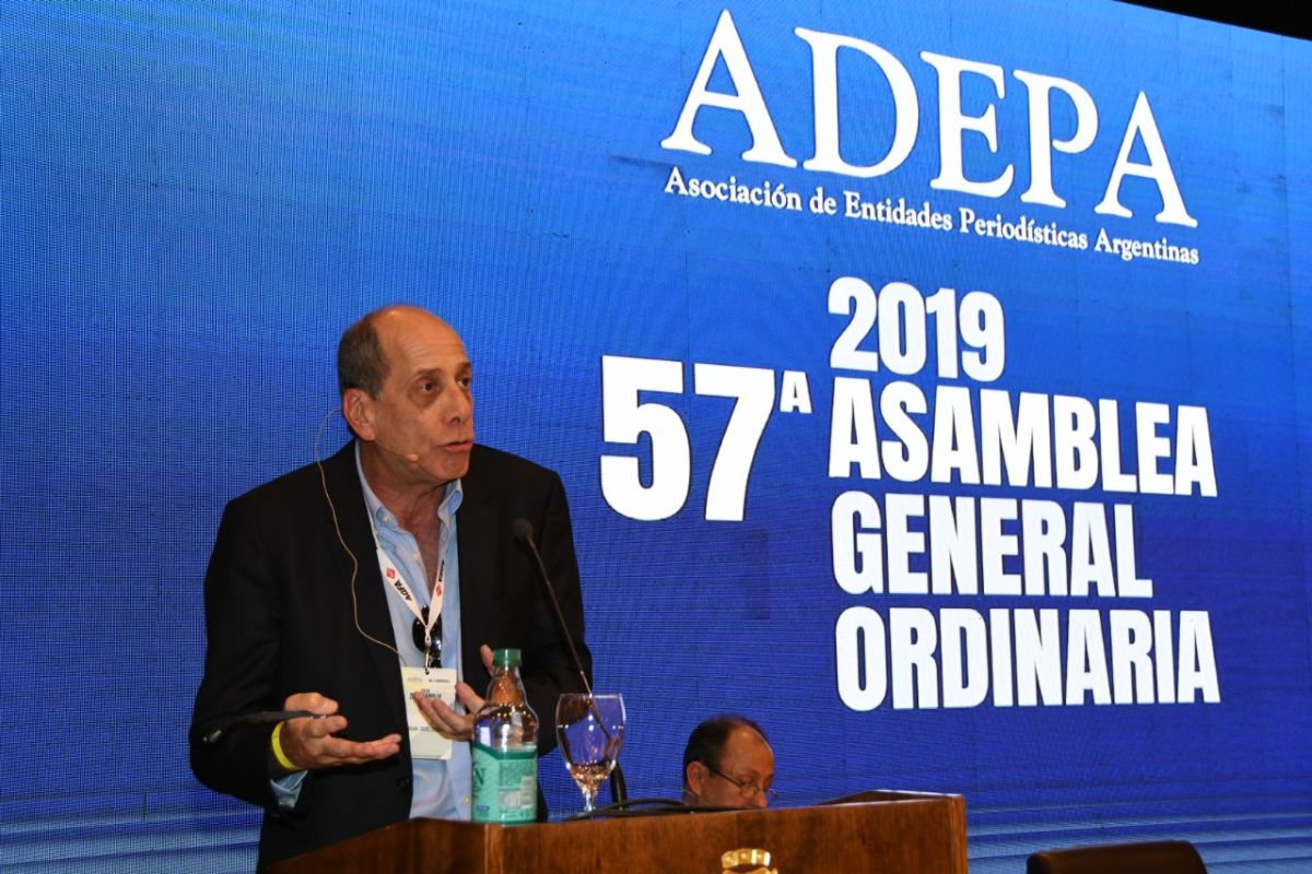 “Atravesamos un marco económico y social extremadamente difícil para la sociedad argentina en su conjunto. Las crisis económicas se agudizan aún más en nuestro sector, por la enorme elasticidad que tiene la publicidad frente a la macro, a lo que se suma la retracción del consumo de medios pagos, ya golpeada por el cambio tecnológico». Así lo señaló Martín Etchevers, presidente de la Asociación de Entidades Periodísticas Argentinas (Adepa), al inaugurar las deliberaciones de la 57ª Asamblea General de la entidad, que sesionará hasta mañana en Termas de Río Hondo, Provincia de Santiago del Estero.