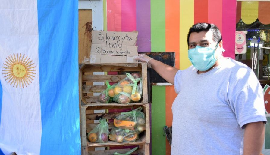Rolando Núñez se hizo conocido en los últimos días como “el verdulero solidario”. En las afueras de su local ubicado en Sáenz Peña y 9 de Julio se puede observar bolsas con verduras y frutas para quienes más lo necesiten. De manera gratuita entrega zapallo, papa, batata, cebolla y también manzanas y naranjas. “Lo veo como que estamos devolviendo el apoyo que la gente nos da durante todo el año”, remarcó.