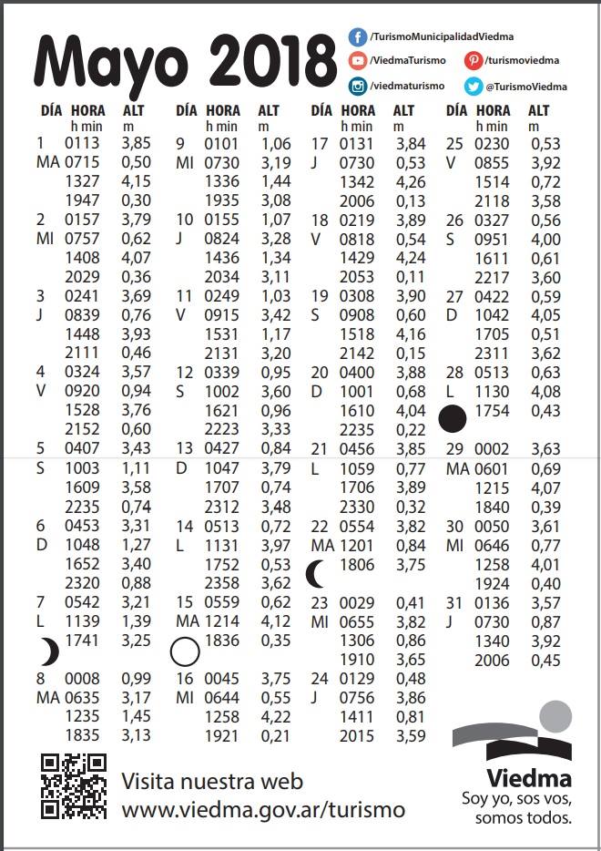 La tabla de mareas para la costa viedmense