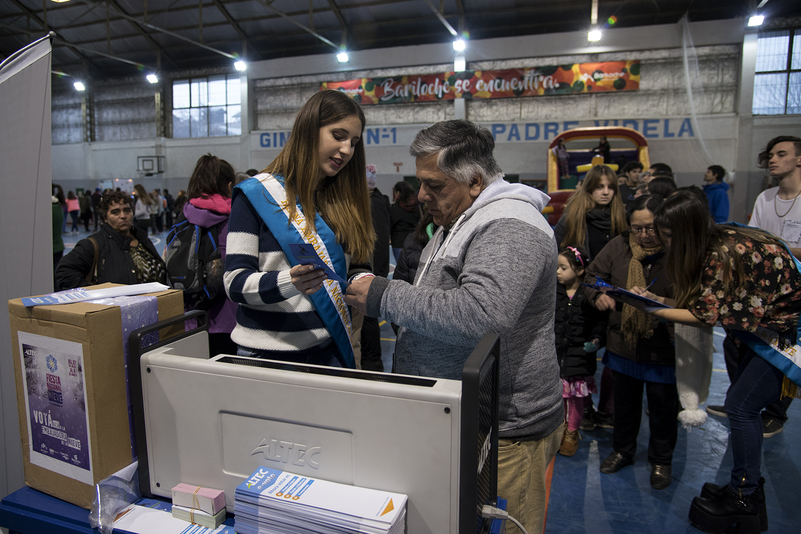 La copiosa lluvia que se posó sobre la ciudad no aminoró el ánimo festivo que se vivió dentro del Gimnasio Municipal 1. Allí las diez candidatas a Embajadora de la Nieve compartieron una tarde de juegos con el público, dieron a conocer sus proyectos solidarios y convocaron a participar de una colecta de ropa, juguetes y alimentos.