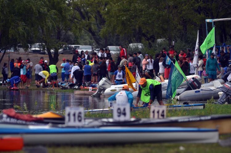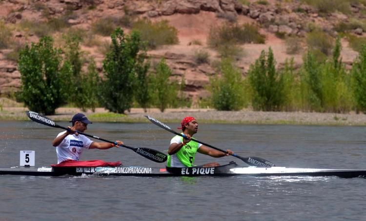 En el primer pelotón que entró en contacto con el agua se encontraban los dos kayacs favoritos. Por un lado los actuales bicampeones Franco Balboa-José Luis Guerrero (El Biguá), y por el otro la dupla que ya lleva una docena de victorias corriendo juntos, Pinta-Mozzicafreddo. Los del club neuquino salieron muy fuerte, con intenciones de cortarse. Pero según como lo manifestó Balboa al finalizar la prueba, la presencia de lama en el lecho del río, conspiró ante el tempranero intento de escapada.