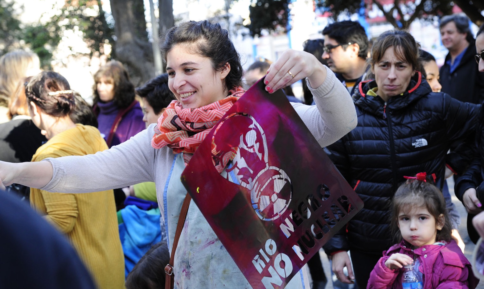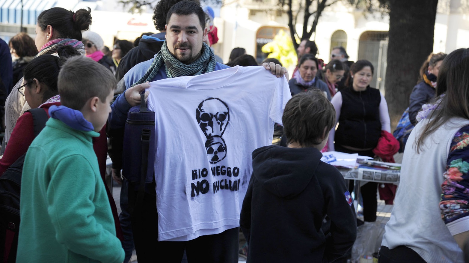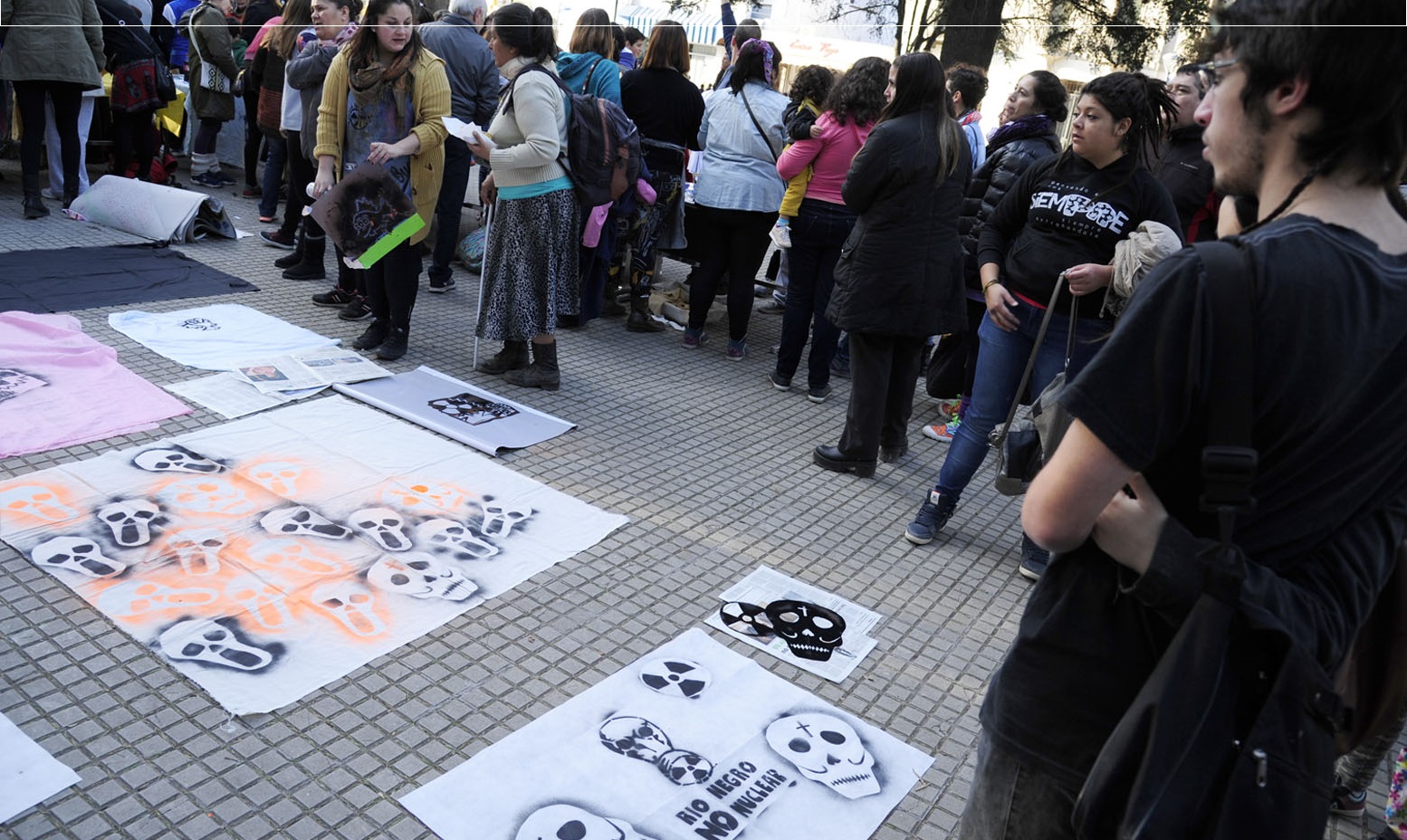El escenario fue la céntrica plaza Alsina frente a la catedral de Viedma y el objetivo la oposición de la instalación de la planta nuclear en la costa atlántica rionegrina