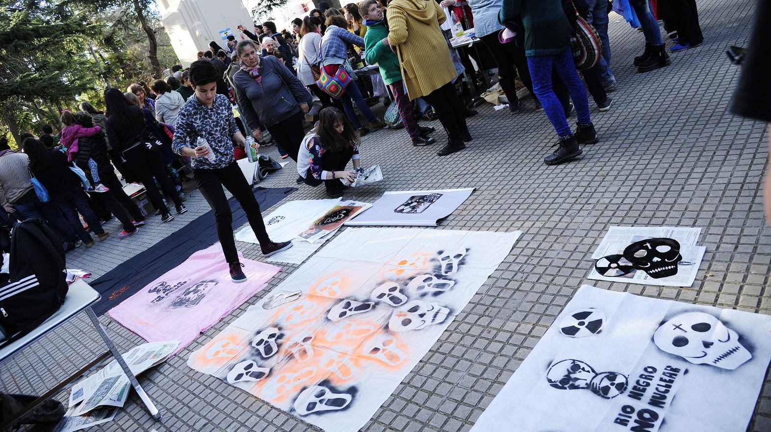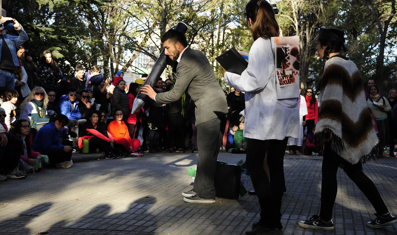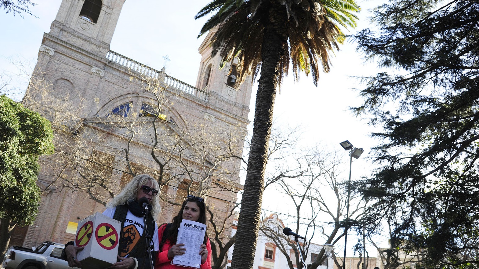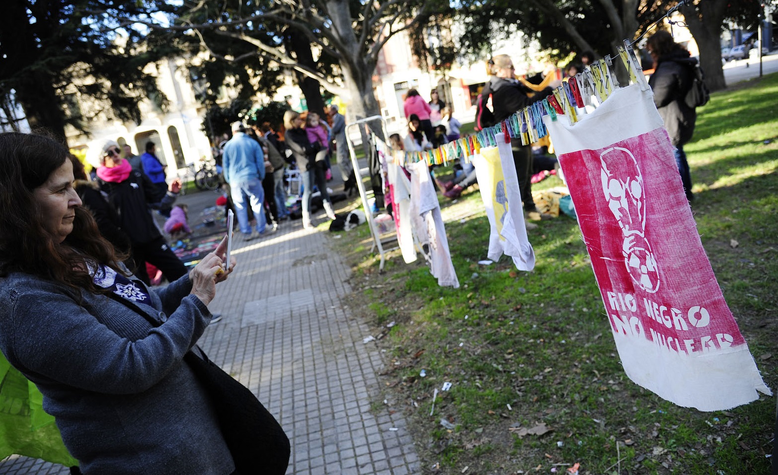 El escenario fue la céntrica plaza Alsina frente a la catedral de Viedma y el objetivo la oposición de la instalación de la planta nuclear en la costa atlántica rionegrina