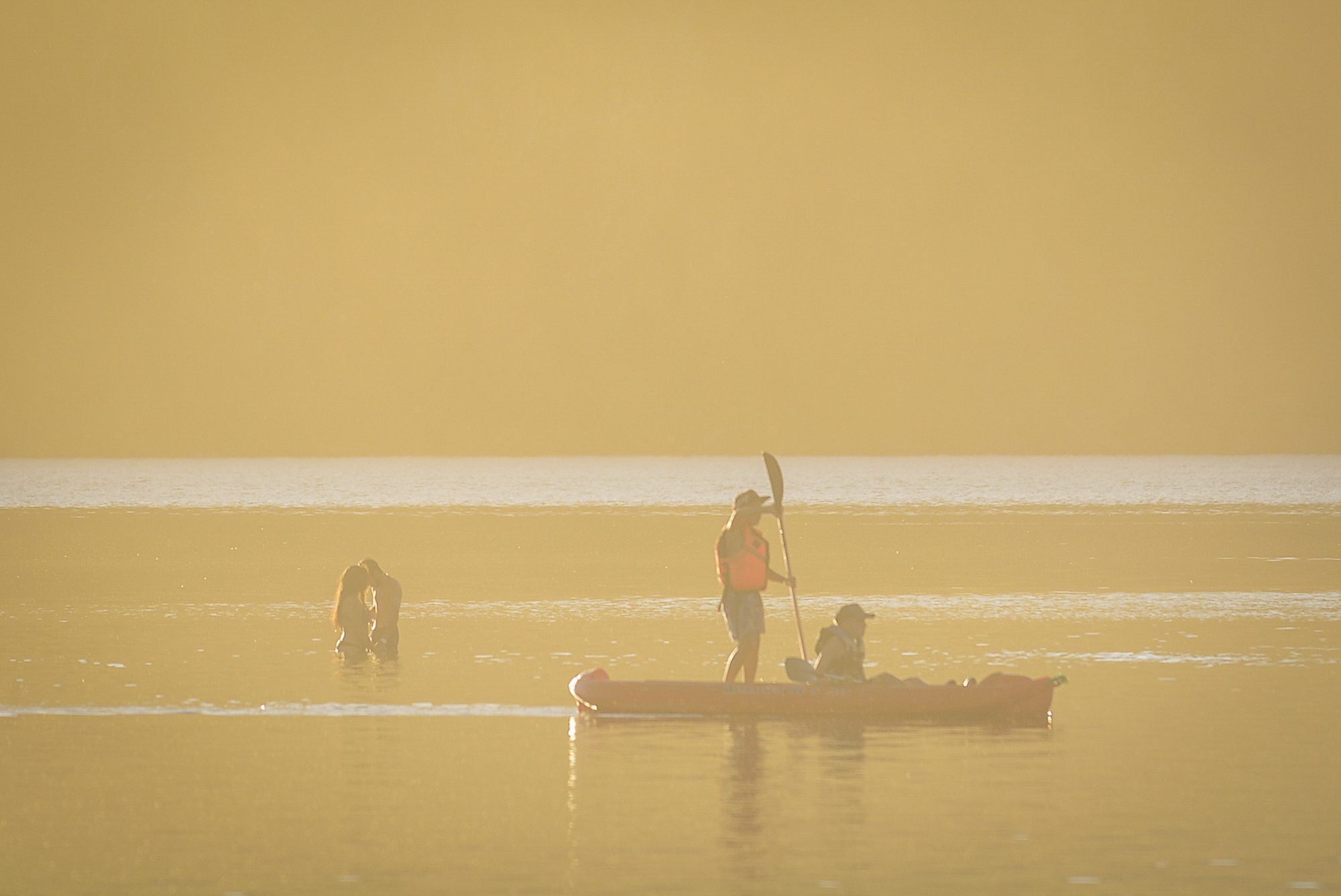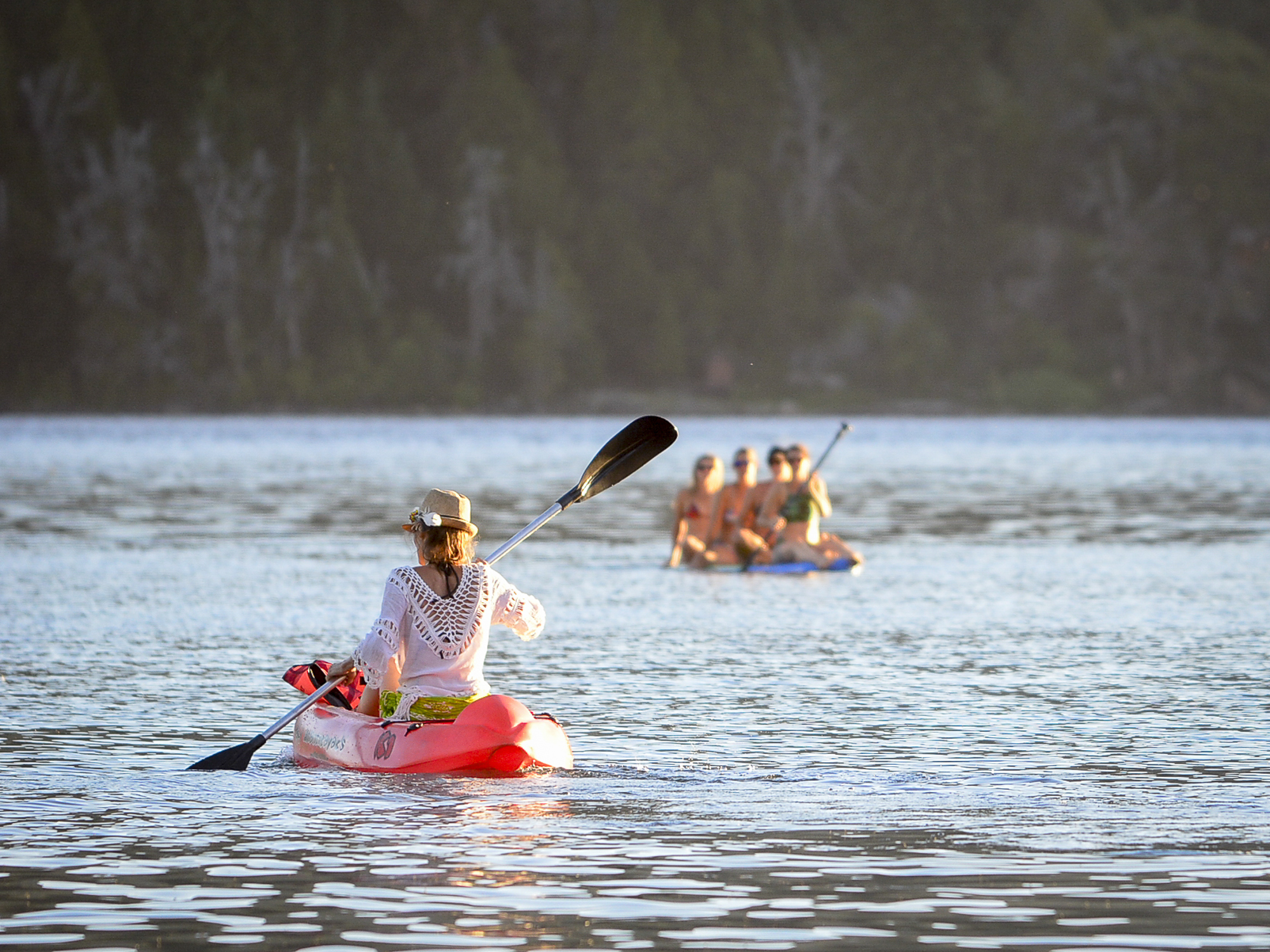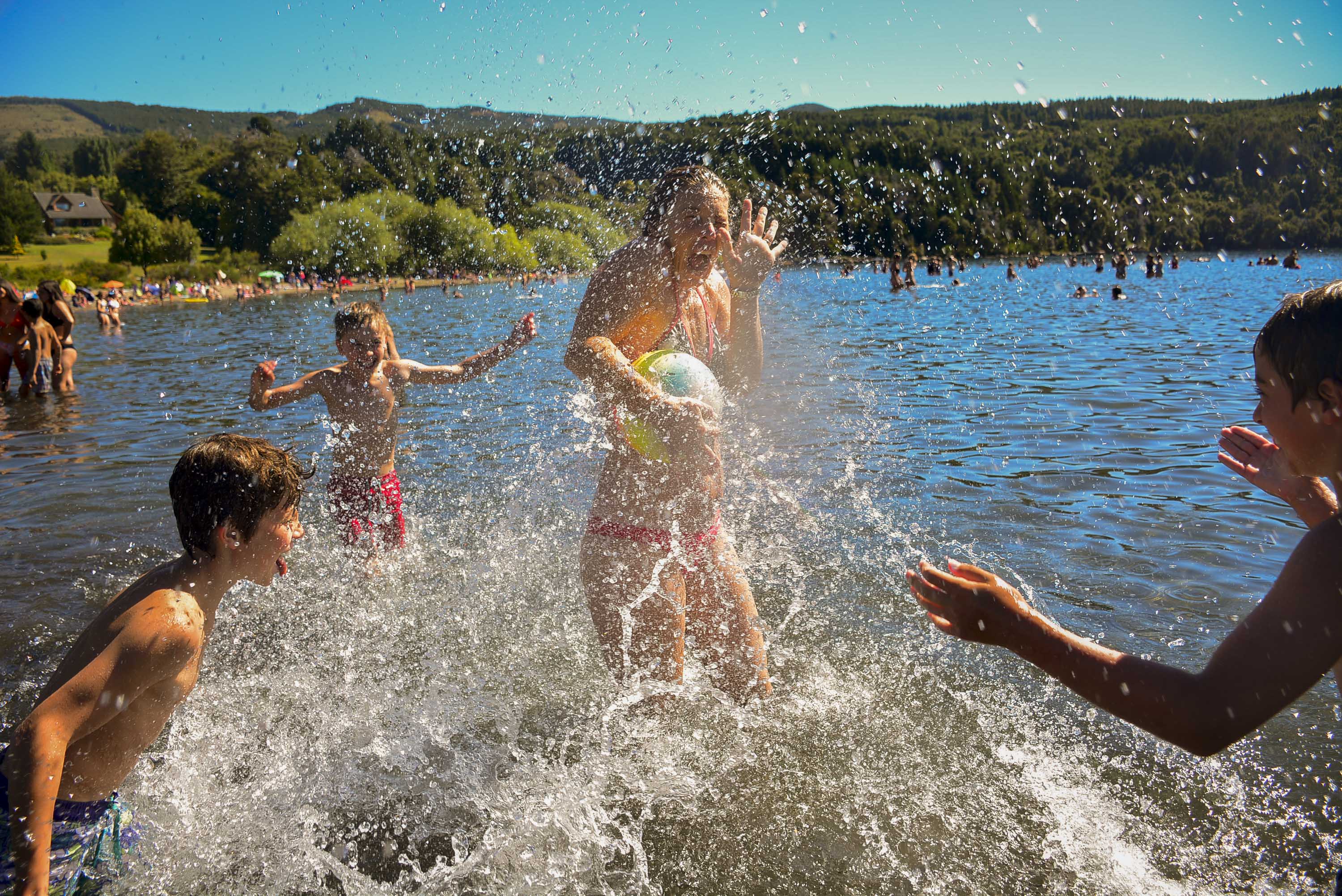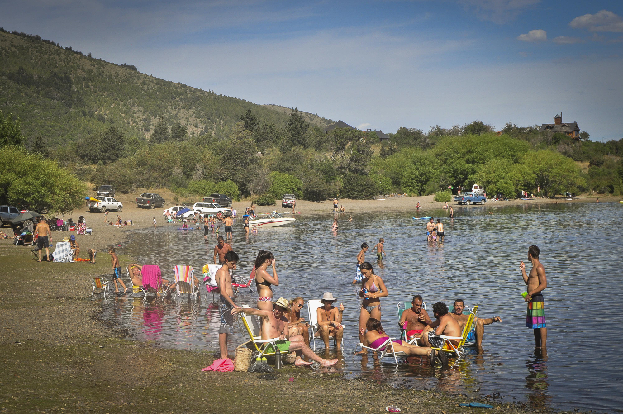 Podés internarte en el lago unos 300 metros sin que el agua supere la cintura en el caso de los chicos, por arriba de la rodilla en el caso de los adultos. El fondo es arenoso y la temperatura del lago es cálida en estos días. Es la preferida de los adolescentes.