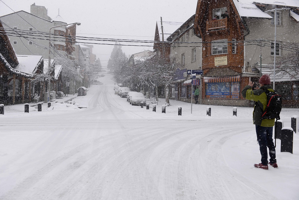 La nieve persistente e intensa llegó a todos los rincones de Bariloche, incluso al Centro Cívico donde no es habitual la postal de la nevada. Las complicaciones se dieron en el tránsito pero aun así la ciudad pintada de blanco generó buenas reacciones entre los barilochenses.