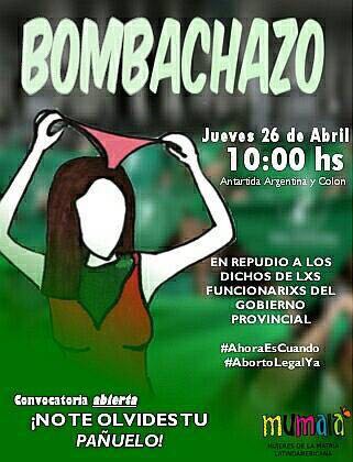 Otra actividad programada en la ciudad para manifestarse a favor del aborto será mañana, a las 10. La agrupación Mumalá convocó a participar de un “bombachazo” que se realizará en Antártida Argentina y Colón.