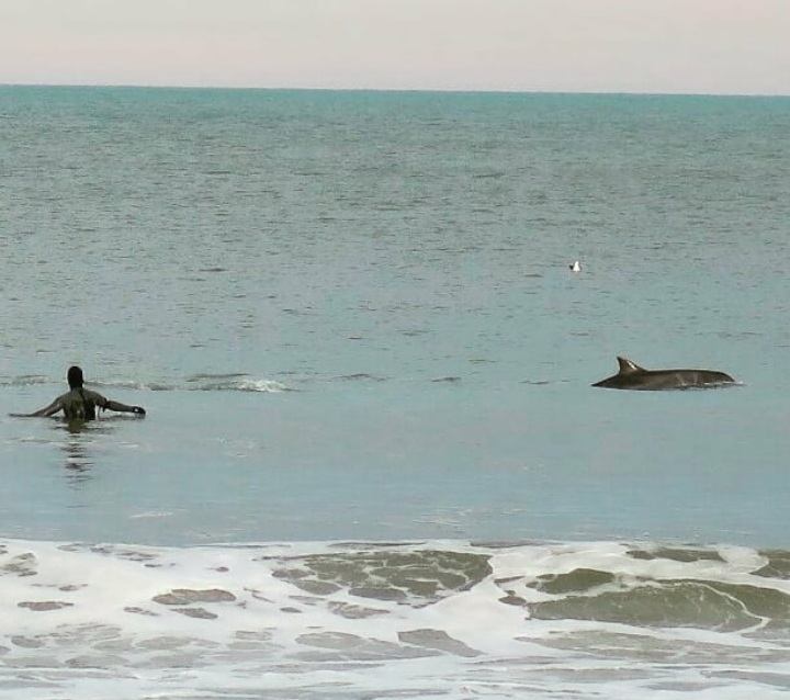 «¿Si son rutina estos encuentros? Si vas a pasar varias horas en el agua sabés que algún encuentro vas a tener: lobos, delfines, a veces te asustás porque aparecen de repente. Los lobos cuando siguen una ola no avanzan siempre como los surfers, en un momento se tirán para atrás y escuchás el ruido del panzaso. Otras veces estás sentada en la tabla y ves el salto de una ballena a lo lejos, escuchás su soplido. Y otras te puede pasar como el jueves, que estás a metros de los lobos y se sume un perro», relata.