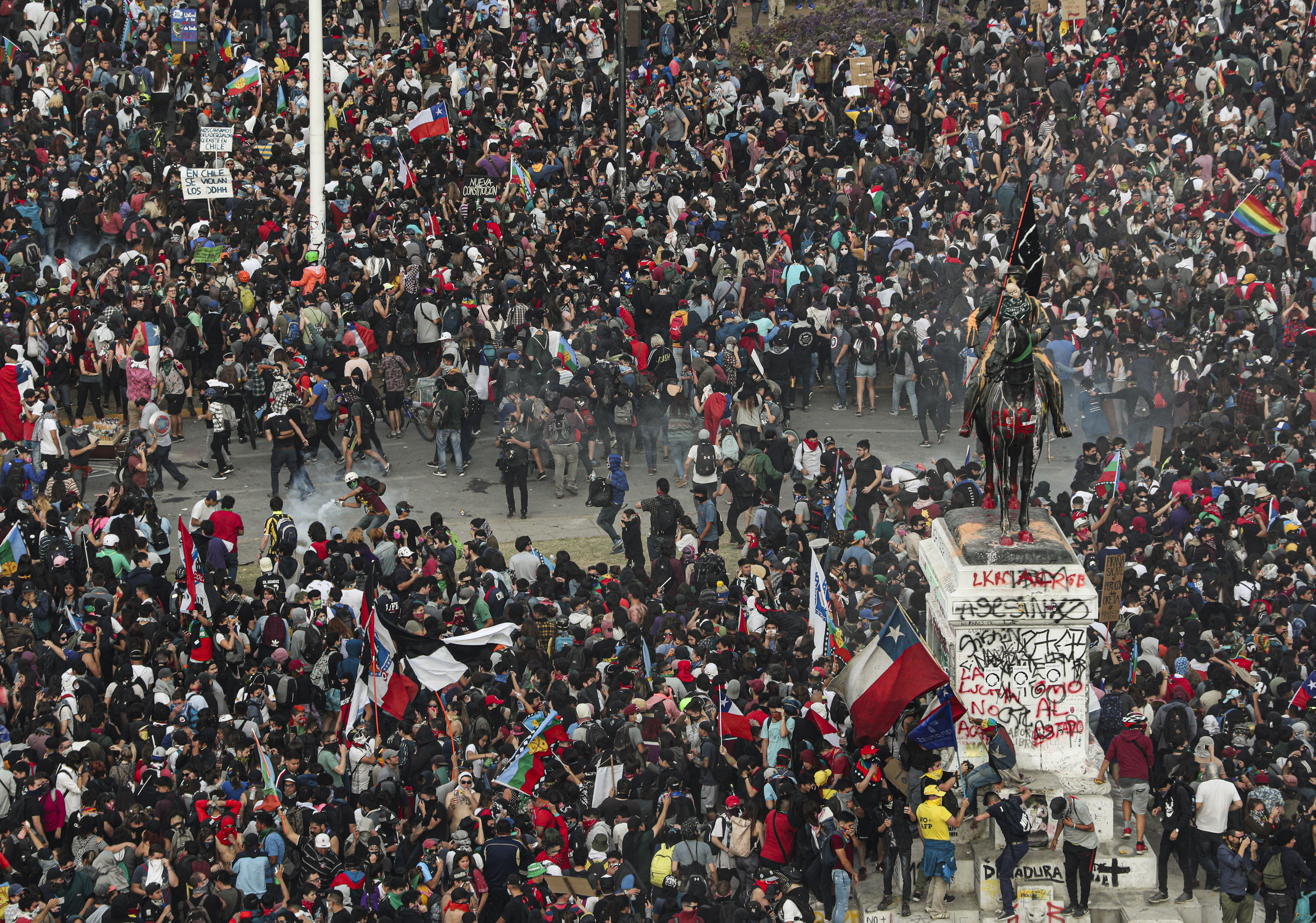 Impedidos de avanzar, los manifestantes se expandieron por varios puntos del barrio de Providencia, la puerta de entrada al sector financiero y las zonas más acomodadas de la capital chilena.