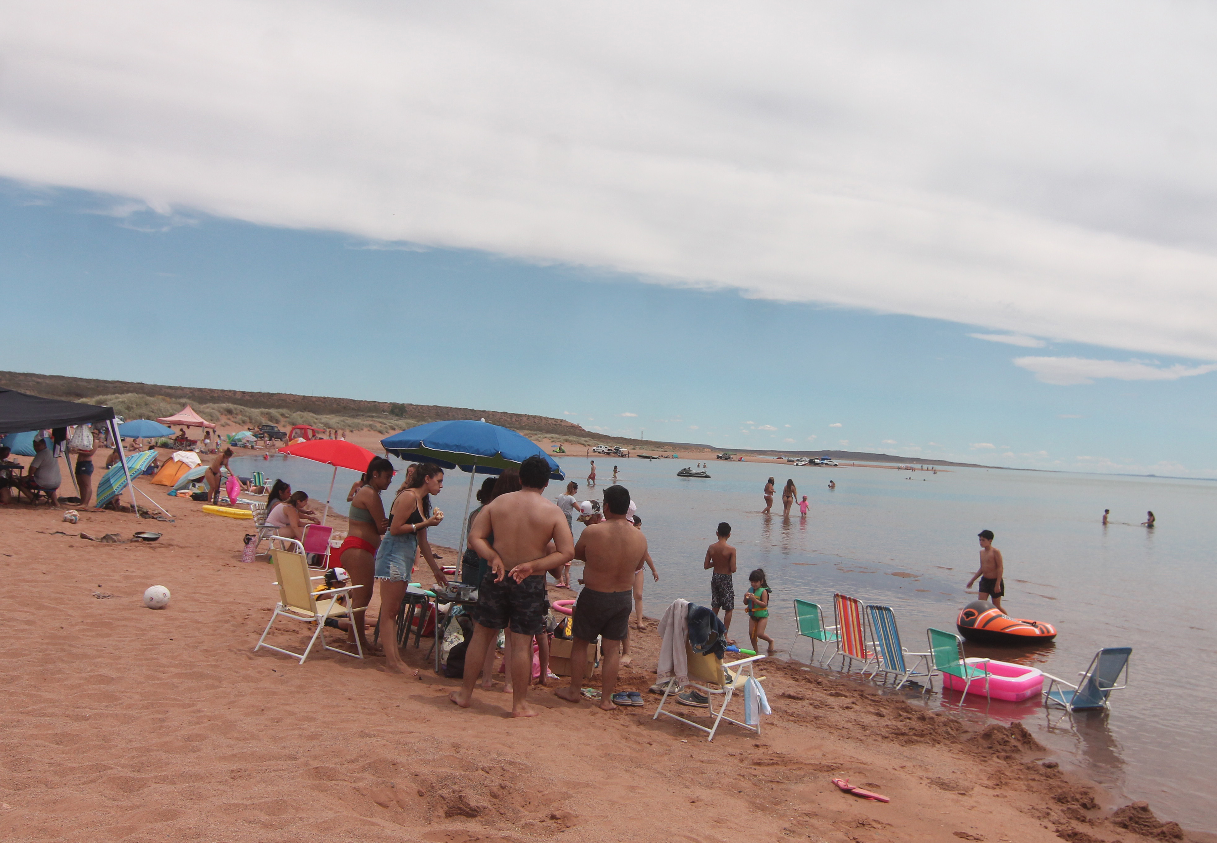 A diferencia del lago Mari Menuco, el agua tiene un tinte más verdoso y es más cálida, por la escasa profundidad. Para los adultos, eso puede ser molesto. Si quieren que el agua les llegue al pecho, hay que meterse unos 50 metros. Aunque para los niños es un plus, pues sus padres pueden distenderse sin preocuparse. De todas formas, no hay guardavidas y hay que estar alertas.