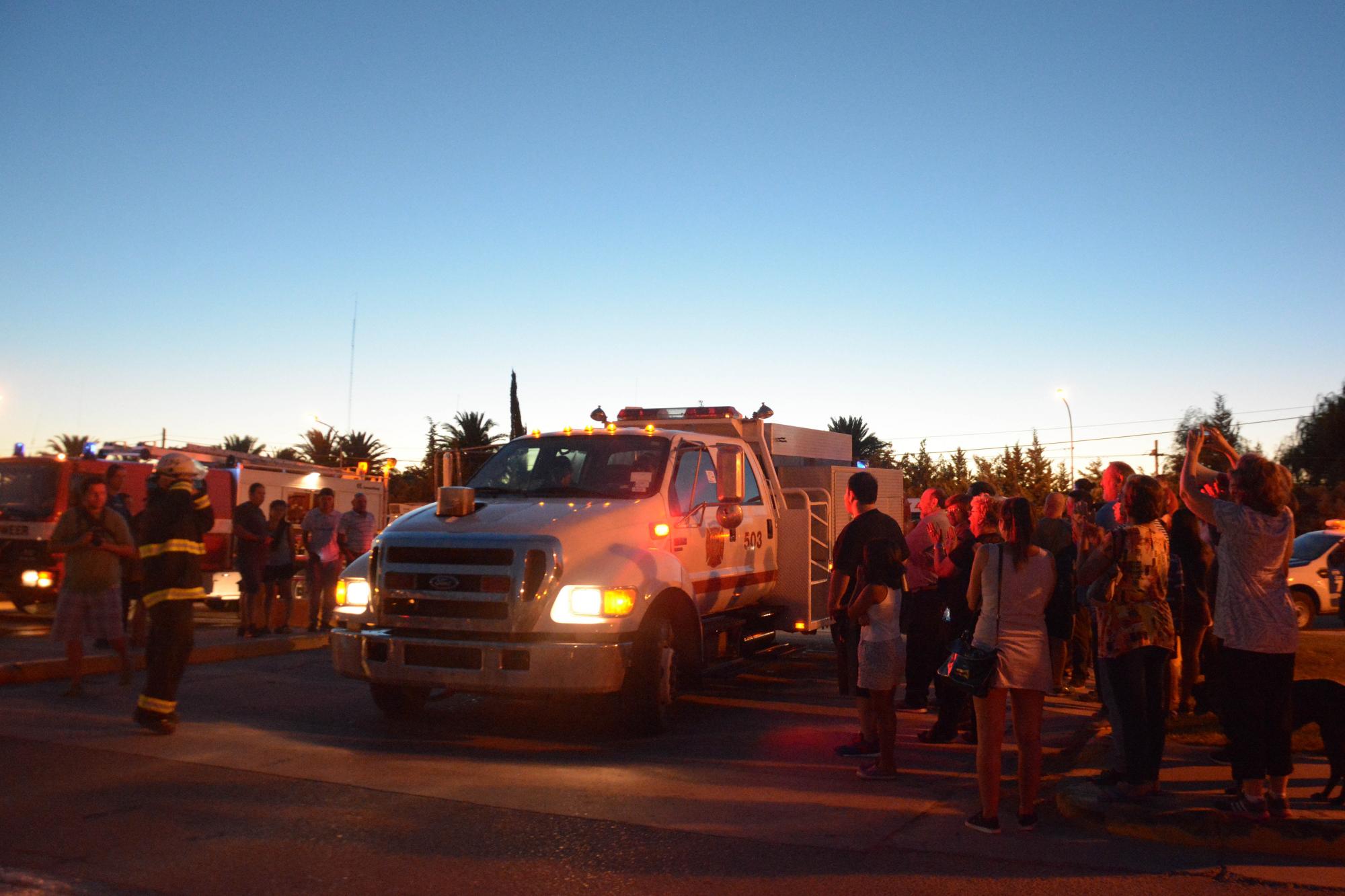 Varios vecinos se congregaron en el paseo del Bicentenario para recibir, junto a la comisión directiva del Cuartel de Bomberos Voluntarios de Roca, a la nueva unidad adquirida en Texas, EE.UU.