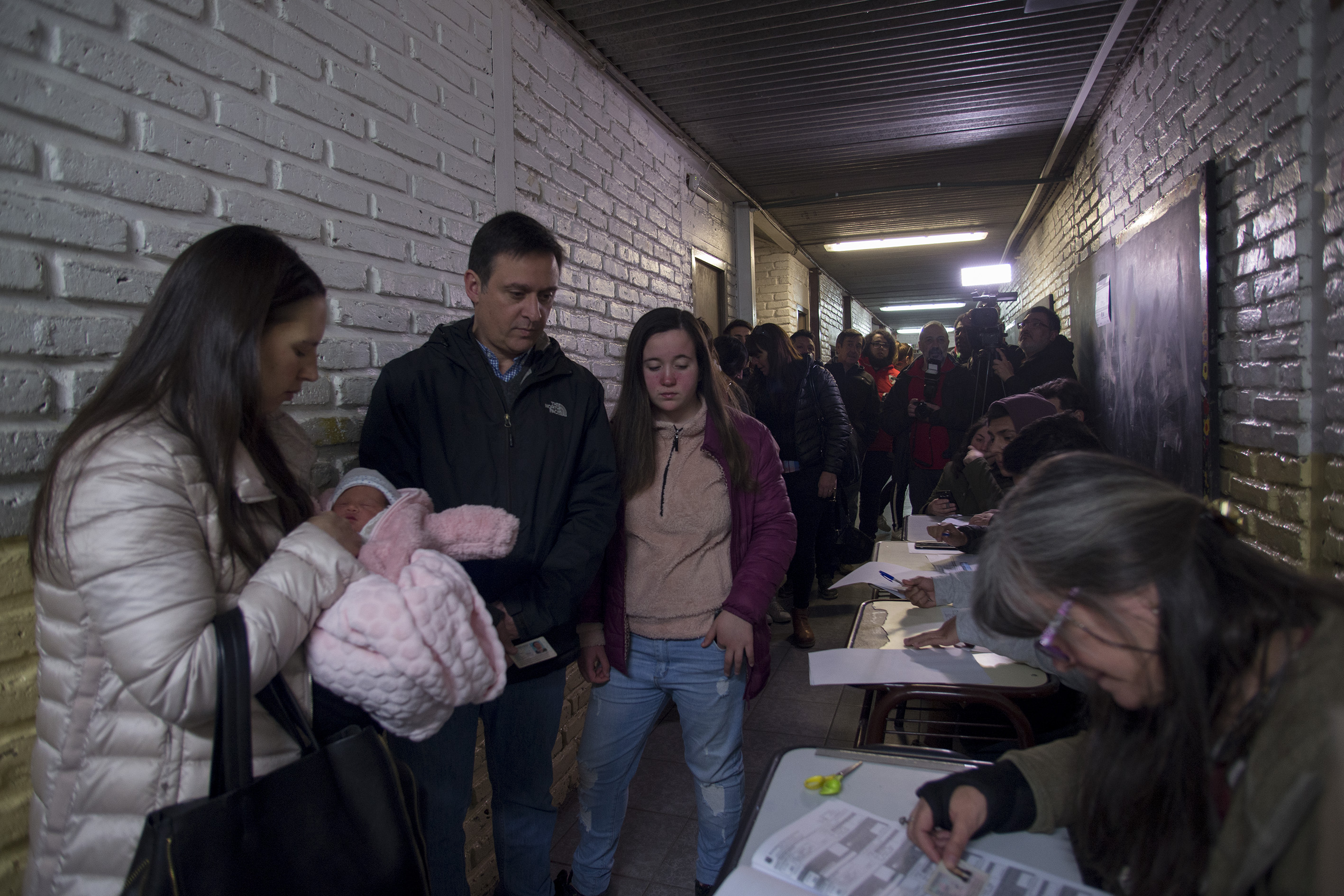 A las 11 el candidato a intendente del Frente de Todos, Daniel Natapof, votó en la Escuela 185 acompañado por su familia y su tercera hija Simona, que nació el viernes al filo del cierre de la campaña.