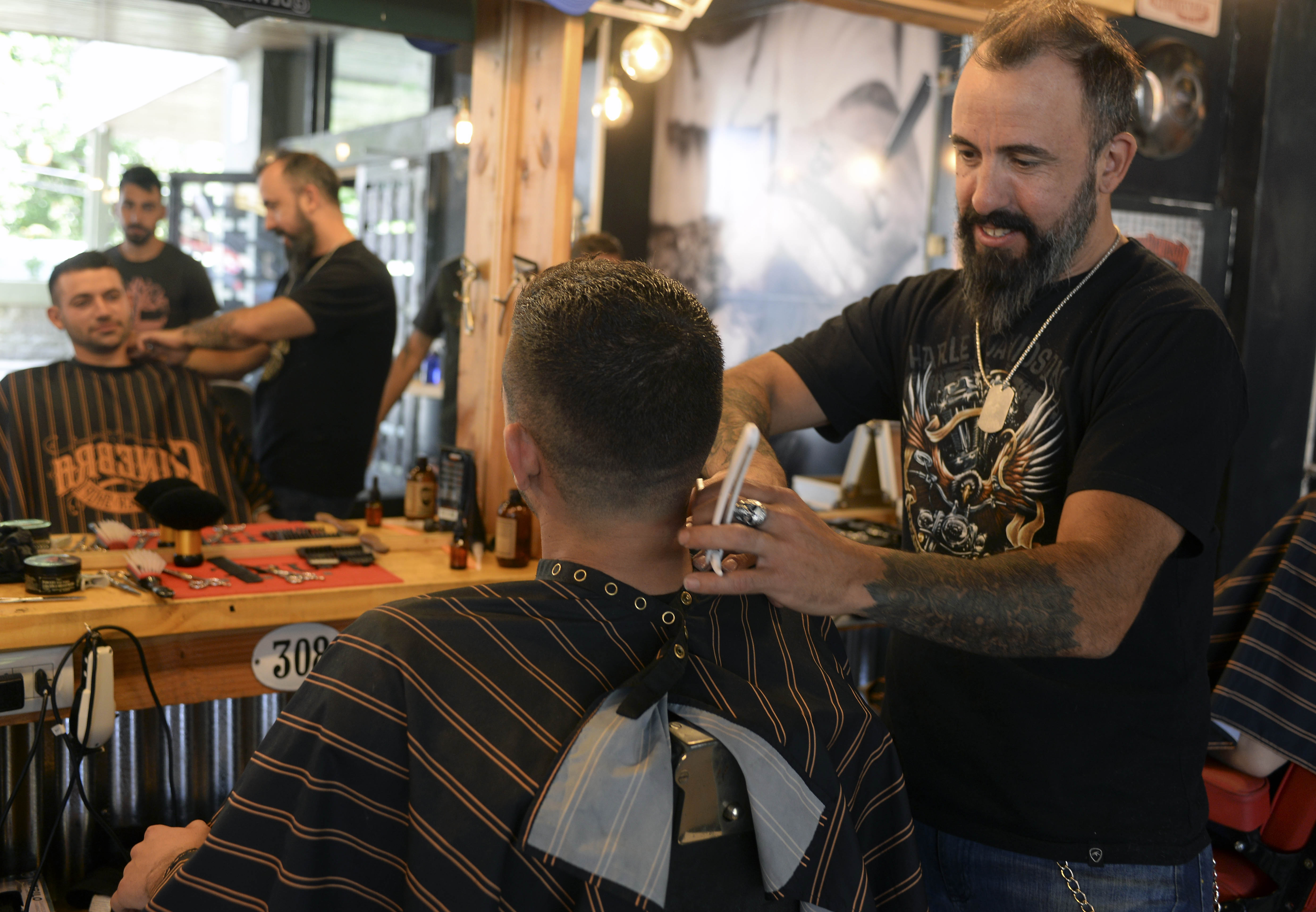 “Do you like?”, pregunta Marcelo Maccayone a un joven que no deja de observarse en el espejo de su barbería, con aire satisfactorio.
