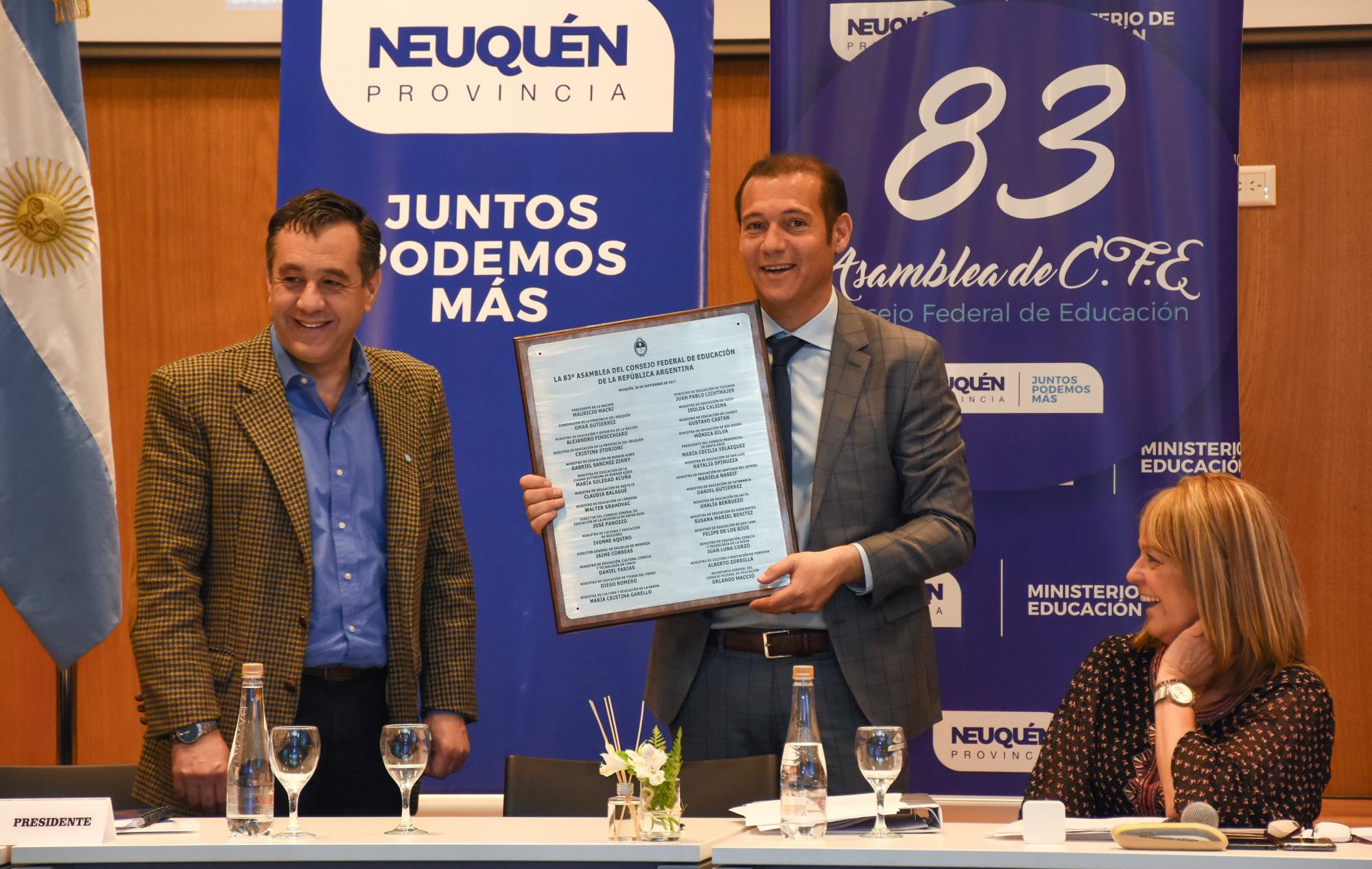 El ministro de Educación de la Nación, Alejandro Finocchiaro, inauguró ayer la 83° asamblea del Consejo Federal de Educación que, en esta ocasión, tiene como sede a Neuquén. La apertura se realizó en el salón Pulmarí del Banco Provincia del Neuquén y continuará hoy, desde la mañana.